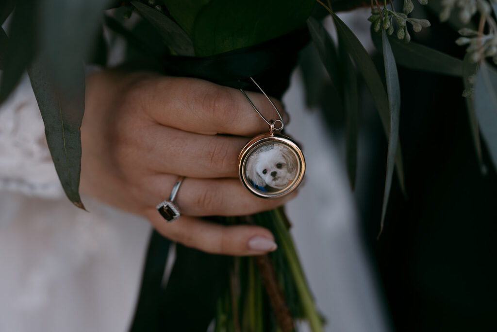 If having your loved ones physically there isn’t possible or you just want to incorporate them in a quieter way, bringing meaningful items with you can be incredibly powerful. I’ve seen a few of the following and it’s been really lovely: photos tucked into your bouquet, lockets or jewelry passed down through family, framed pictures for your ceremony space, and small keepsakes that remind you of someone important. It’s a subtle way to carry them with you, without changing the overall feel of your day!